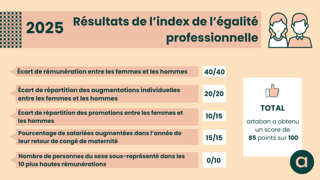 Nous nous engageons à maintenir une transparence autour de notre index d’égalité professionnelle. Ainsi, vous trouverez ci-dessous les résultats de l’année 2025 :